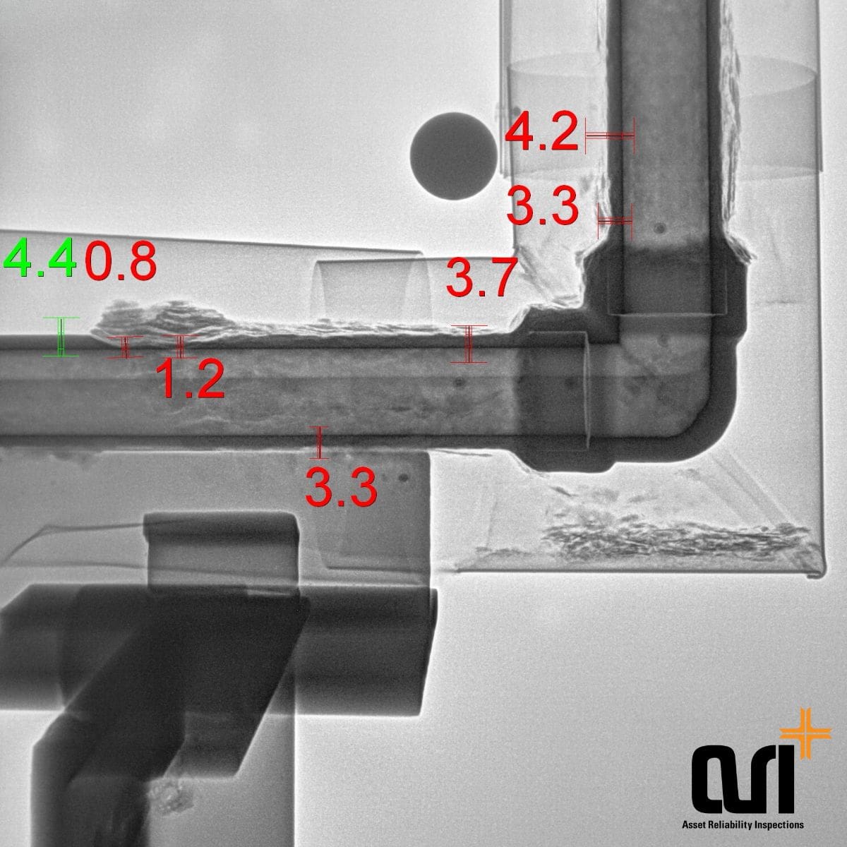 Digital Radiography (DRT) is an advanced NDT technique that uses X-ray or gamma-ray radiation to inspect the internal structure or objects and generate digital images for analysis. DRT is commonly used to capture the thickness of pipes and spools to assess the remaining wall thickness. This makes DRT the preferred choice for identifying Corrosion Under Insulation (CUI) in pipes up to and including DN150 in size.